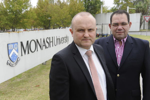 Member for La Trobe Jason Wood and Mayor of Casey Sam Aziz say students in the southeast will suffer under Monash's proposal. 151105_04 Picture: STEWART CHAMBERS