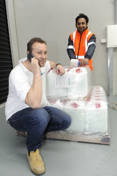 M-Innovation director Simon Maselli with IoT engineer Shams Hamza, preparing for an interstate delivery. 156639 Picture: STEWART CHAMBERS.