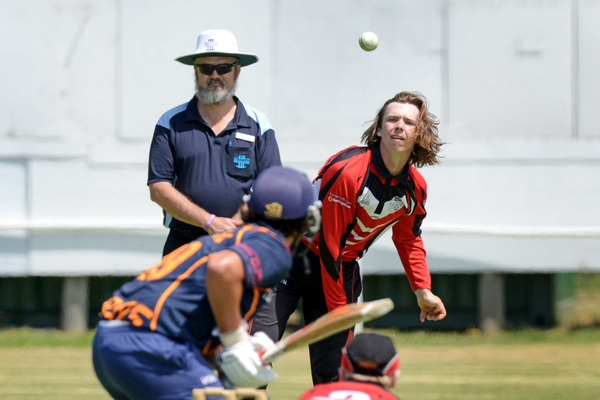 Cardinia’s Travis Wheller bowls to Pakenham’s Zac Chaplin. The two young guns will join forces in the WGCA Country Week squad in 2018. 176265 Picture: ROB CAREW