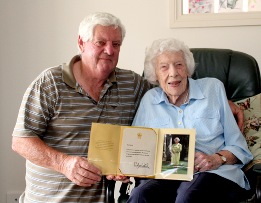 Helen with her son Derek and the Queen''s congratulatory card. Picture: ROMAN KULKEWYCZ