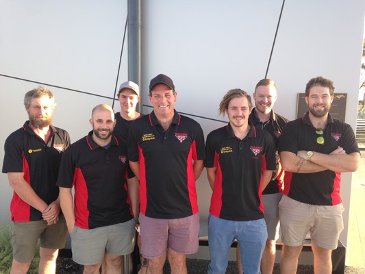 Some of the Nilma Darnum leaders for 2018 (from left): Reserves coach Robbie Campbell, senior playing assistant Chris LaRosa, Ben Campbell, new senior coach Matt Shorey, Nathan Campbell, Nick Murray, and Chris Cameron. Picture: SUPPLIED