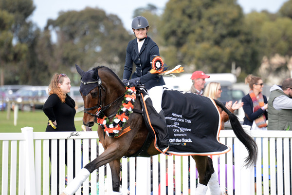 Nina riding LP Boudin to take out the 2014 Melbourne International Horse Trial's Best Performed Retired Race Hose. Picture: Julie Wilson Equestrian Photography.