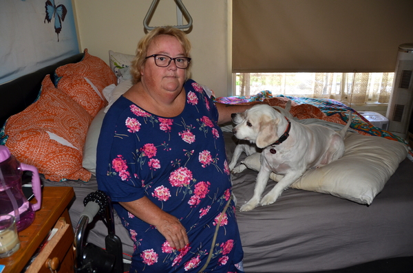 Shelly Dean, who suffers from progressive MS, barricaded herself in her room with her dogs when her home was attacked. 179676_05 Pictures: KYRA GILLESPIE