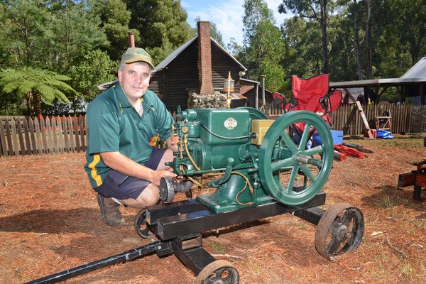 Barry Thomas and his International Petrol Engine from 1930s. It has 1.5 Horse Power. 179514_02 Pictures: ROB CAREW