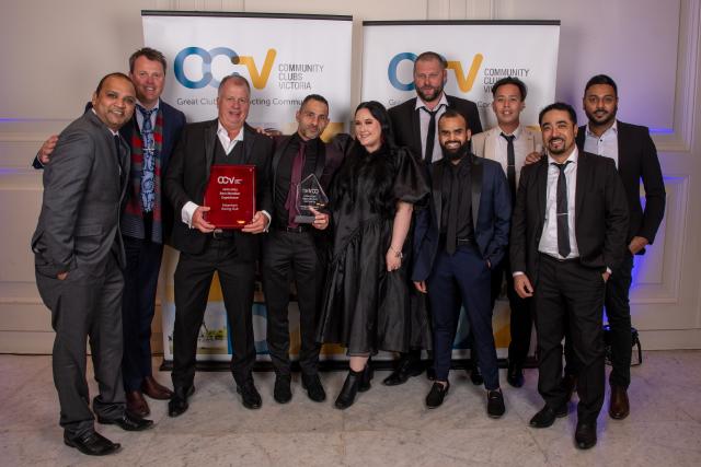 The winning Pakenham Racing Club team Aditya Rajan (Club Officer head chef), Blair Odgers (CEO), Rick Tyrrell (chairman), Hussein Dergham (general manger clubs), Jules Cottee (chief marketing officer), Shannon Gomes (Club Officer duty manager), Milan Shrestha (Cardinia Club head chef), Cameron Miller (racecourse maintenance manager) , Edward Meach (general manager people) and Leon Jayawardhana (executive chef).