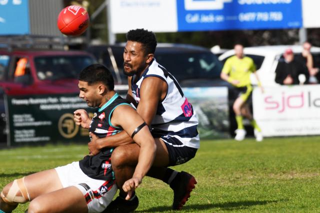 Sport Goon steamroll Cobras 29/08/2023 FacebookTwitterEmail Right on top! Deon Boavida lays a strong tackle on Cory Machaya; then kicks a goal on the half-time siren that is celebrated by his Nar Nar Goon teammates. 356294 Pictures: STEWART CHAMBERS Purchase this photo from Pic Store: 356294 By David Nagel The sweet smell of September waits for Nar Nar Goon after Justin Stanton’s men produced an impressive and dominant display […] Subscribe or Login to see the rest of the content. Username Password * Remember Me Forgot Password
