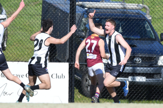 Narre Warren's Will Howe celebrates one of his 43 goals in 2025 - the young gun was rewarded with selection into the team of the year. (Rob Carew: 495022)