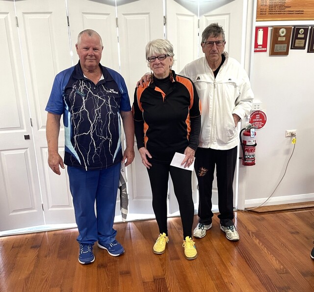 Winners of the Big Bash Tournament at Garfield, from left; David Bloom, Pauline Summerhaze and Danny Wise. (Supplied: 516523)